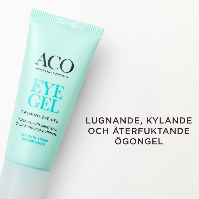 ACO Face Calming Eye Gel är en svalkande ögongel med pantenol. Gelen bidrar till att reducera påsar under ögonen och återfuktar huden i upp till 24 timmar. Oparfymerad.