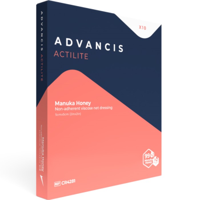 Actilite Viskosnät Manuka Honey är en mjuk, steril sårkompress indränkt i 100 % medicinsk Manukahonung som rengör, skyddar och främjar naturlig sårläkning hos hund och katt. Honungen skapar en fuktig miljö som motverkar bakterier, minskar lukt och stödjer kroppens egen läkningsprocess.