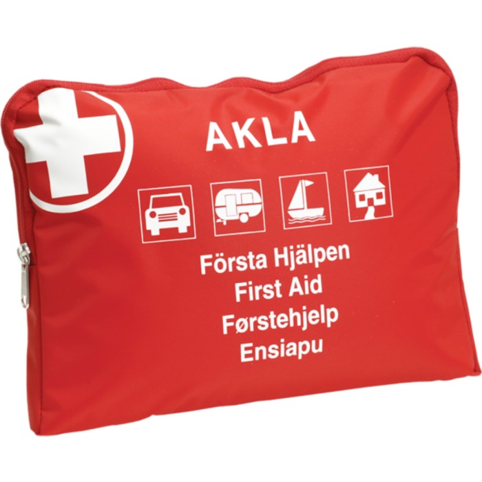 AKLA Första Hjälpen-kudde Medium har en förlängd dragkedja som går en bit ner på sidorna - vilket gör innehållet lätt överskådligt. Innehållet är uppdelat enligt 1 - 2 - 3-systemet©, anpassat till skadans art och med tydliga instruktioner.