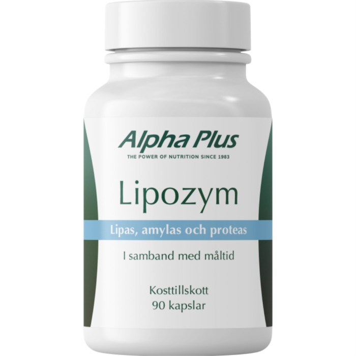 Alpha Plus Lipozym är ett enzymkomplex med lipas, amylas och proteas – tre matsmältningsenzymer som förekommer naturligt i kroppen. Lipas bryter ned fett, amylas hjälper till att spjälka kolhydrater och proteas är verksamt vid nedbrytning av protein. Produkten tas i samband med måltid och är ett tillskott för den som vill tillföra enzymer som stödjer kroppens egna processer.