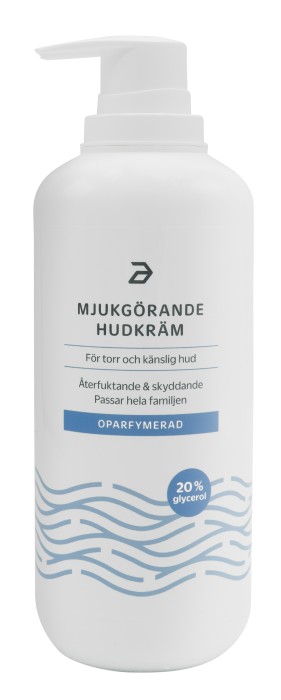 Apoteas mjukgörande hudkräm med 20% glycerol är en återfuktande och skyddande kräm som passar även små barns känsliga hud. En mild och effektiv, oparfymerad kräm som gör huden mjuk och kan användas av hela familjen, från barn till senior.