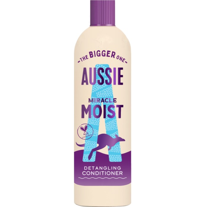Aussie Miracle Moist Detangling Conditioner är ett utredande hårbalsam för torrt och skört hår. Miracle Moist Conditioner är berikad med australiensk makadamianötsolja, och ger djup återfuktning och näring till håret. Vegansk formulering (utan ingredienser av animaliskt ursprung).