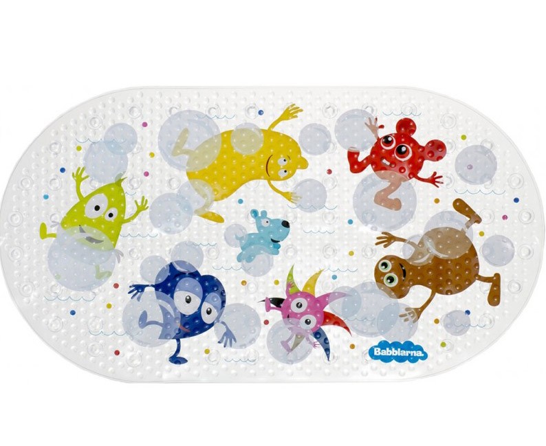 Nu följer Babblarna med dig även till badrummet. Denna mjuka och färgrika badmatta med härligt Babblarna-motiv svarar för badglädjen. För säkerheten svarar den halksäkra ytan och de många sugkopparna.