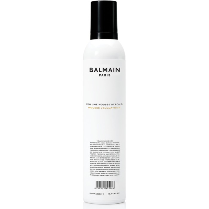 Balmain Volume Mousse Strong är en hårmousse du använder för att skapa hår och frisyrer med flexibel styling, som håller under hela dagen. Moussen ger volym och fyllighet men gör samtidigt håret mjukt. Den vårdar och skyddar ditt hår och verkar anti-statiskt.