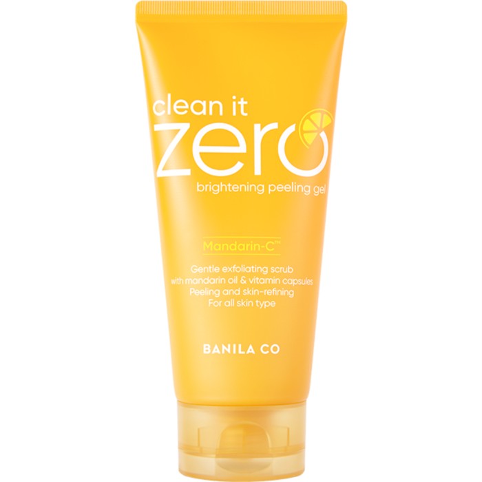 Clean It Zero Brightening Peeling Gel från K-Beautymärket Banila Co är en återfuktande peelinggel för ansiktet, som varsamt avlägsnar döda hudceller. Den exfolierande rengöringen innehåller växtbaserad cellulosa som skonsamt exfolierar och gör huden mjuk och slät. Gelen är berikad med Mandarin-C™ som är en kombination av mandarinskalolja och vitaminer som ger klarare hy och naturlig lyster. Vegansk.
