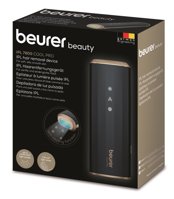 Beurer IPL 7800 Cool Pro är en IPL med kylfunktion. IPL-ljusteknik används för professionell hårborttagning, och avaktiverar hårrötterna och minskar på så sätt risken för att håret växer ut igen. Med en 3,8 cm² stor ljusyta är denna IPL designad för en snabb applicering som tar bara 23 minuter på den lägsta energinivån för armar, ben, armhålor och bikinilinje. Integrerad hudkontaktsensor för att säkerställa god kontakt med huden, och "Auto Flash-läge" för bekväm applicering. Maximalt antal ljusimpulser är upp till 1 miljon. IPL 7800 har en kylfunktion för att kännas behagligt sval på huden. Kan ge upp till 50% hårreducering efter 3-4 behandlingar. Används med nätsladd.