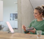 Lampan imiterar förloppet under en solig dag. Kan användas hemma eller på arbetsplatsen. Är exceptionellt ljusstark och ger en jämn belysning. Ljusintensitet (terapiinställning): ca 10 000 lux (avstånd 13 cm). Flimmerfri och UV-fri. Energisparande LED-teknik. Bekväm manövrering via pekknappar.