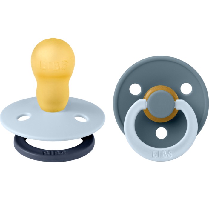 Pacifier Studio Colour är en napp inspirerad av de senaste trenderna. BIBS Colour är BIBS originalnapp som har funnits på marknaden i över 40 år. Den har BIBS runda signatursköld med tre ventilationshål och rund BIBS-graverad nappring. Sugdelen är tillverkad av naturgummilatex.