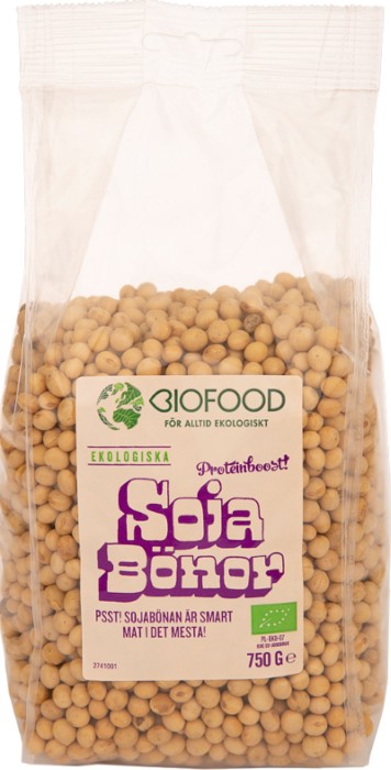 Biofoods ekologiska sojabönor har en mild smak och är goda att använda till en sallad eller för att göra vegetariska biffar. Sojabönor är en baljväxt och innehåller fibrer, protein och mineraler. Du kan addera sojabönor till en soppa om du vill göra den lite matigare, eller göra en robust och härlig böngryta.