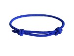 Handgjort klarblått armband med glidknutar. Armbandet är av polyester och har ställbar storlek, vilket gör att det passar hela familjen.