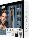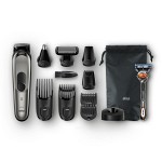 Braun MGK7021 är ett Multi Groom Kit som kan användas för att ta bort och styla hår på hela kroppen. Denna allt-i-ett-trimmer har olika inställningar för olika nära rakning (0,5 - 21 mm) för hår-, skägg- och kroppstrimning. Trimmern har 13 längdinställningar och hållbart vassa metallblad för en större precision.