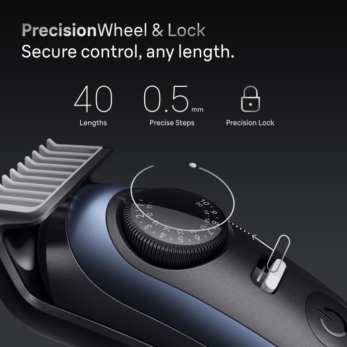 - Full kontroll vid varje trimning med PrecisionLock och PrecisionWheel med 40 längdinställningar i steg om 0,5 mm