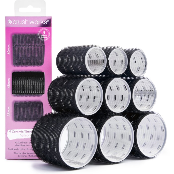 Brushworks Ceramic Thermal Rollers är värmerullar som gör att du kan skapa fylliga, salongsfina lockar hemma. Brushworks värmerullar i keramik är ett set med nio rullar i små, medium och stora storlekar, perfekta för olika lockstorlekar. Keramikkärnan håller värmen jämn och ger lockarna lång hållbarhet, volym och studs – utan frissighet.