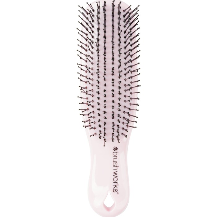 Brushworks Easyglide Detangling Brush är en borste för enkel hårvård och styling. Borsten har åtta rader med flexibla nylonpiggar i två olika längder som lätt löser upp trassel och gör håret mjukt och följsamt. Borsten fungerar bra i både vått och torrt hår och passar de flesta hårtyper. Kan användas både för att kamma igenom balsam, ta hand trassel efter hårtvätt eller bara borsta håret dagligen. De flexibla piggarna ger också en skonsam hårbottenmassage. PETA-godkänd och vegansk.