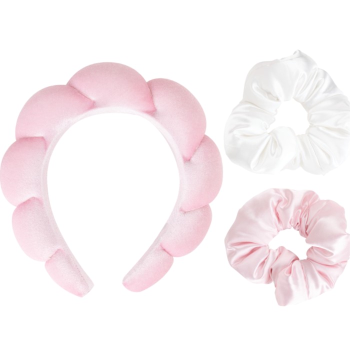 Brushworks Head In the Clouds Set gör kanske skönhetsrutinen både enklare och skönare. I setet ingår ett mjukt hårband och två stora Cloud-scrunchies som håller håret ur ansiktet när du tar hand om huden eller sminkar dig. En perfekt kombo för att du ska känna dig bekväm under din dagliga rutin. Scrunchien är gjord av supermjuk satin som är snäll mot håret och minskar risken för slitage och obehag. Håller håret på plats utan att dra eller orsaka avbrutna hårstrån.