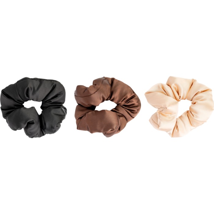 Brushworks Large Classic Cloud Scrunchies har en mjukt vadderad fyllning och ett yttre av lyxig satin. Dessa scrunchies är mjuka som moln och håller håret på plats utan att slita på håret. 3-pack scrunchies i neutrala färger som kombinerar stil och funktion, och passar för alla tillfällen. Den vadderade designen ger extra komfort, även under natten, och hjälper till att förebygga veck och böjningar i håret.