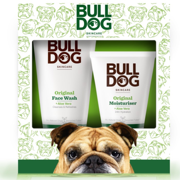 Bulldog Original Skincare Duo Set är ett presentkit för män, med två produkter för den dagliga hudvårdsrutinen: en ansiktstvätt och en fuktkräm.