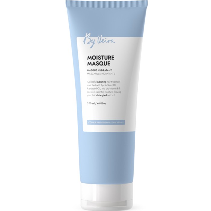 By Veira Moisture Masque är en djupt återfuktande hårinpackning, berikad med äppelkärnolja, rapsolja och pro-vitamin B5. Hårmasken har en exklusiv formulering som låser in fukt i håret, vilket gör håret mer lätthanterligt och härligt mjukt. Innehåller färgbevarande ingredienser och är vegansk. Formuleringen innehåller inga silikoner.