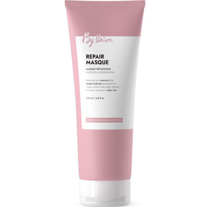 By Veira Repair Masque är en reparerande hårinpackning för skadat, slitet och torrt hår. Inpackningen innehåller veganska proteiner och solrosextrakt som stärker hårstråna vilket resulterar i ett mjukare hår. By Veira Repair Masque innehåller färgbevarande ingredienser och är vegansk. Formuleringen innehåller inga silikoner.