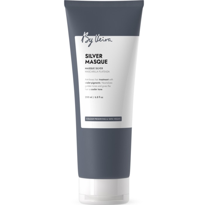 By Veira Silver Masque är en silverinpackning som med hjälp av vårdande ingredienser neutraliserar gyllene toner och återställer hårets naturliga glans. Hårmasken innehåller färgbevarande ingredienser och är vegansk. Formuleringen innehåller inga silikoner. Gör håret mjukt och tillför fukt.