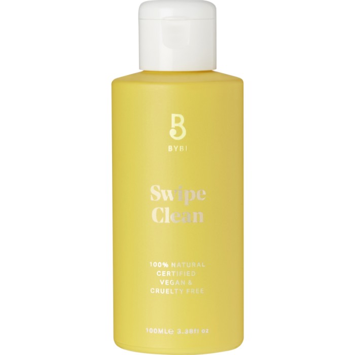 BYBI Swipe Clean Facial Cleansing Oil & Makeup Remover är en ansiktsrengöring och sminkborttagning i ett, och passar för alla hudtyper. Swipe Clean ansiktsrengöring är en olje-rengöring som enkelt tar bort ögonmakeup, som mascara och eyeliner, samt smink och smutspartiklar från ansiktet. Om du fuktar rengöringen förvandlas oljan till en mjölkig substans. Om du använder den som ansiktsrengöring så rekommenderar BYBI att du följer upp med en annan rengöring, eftersom denna produkt är det första steget i en dubbel rengöringsrutin.