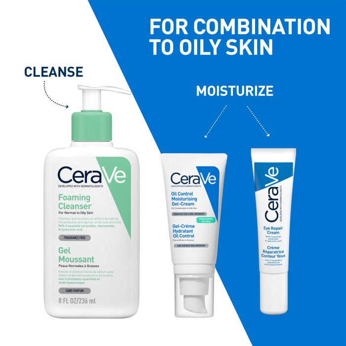 CeraVe Oil Control Moisturising Gel-Cream är en lätt och fuktgivande gelkräm för ansiktet, som passar för kombinerad till fet hud. CeraVe gelkräm hjälper till att absorbera överflödigt sebum och olja från huden, samtidigt som huden återbalanseras med hjälp av krämens fuktgivande ingredienser. Täpper inte till porerna.