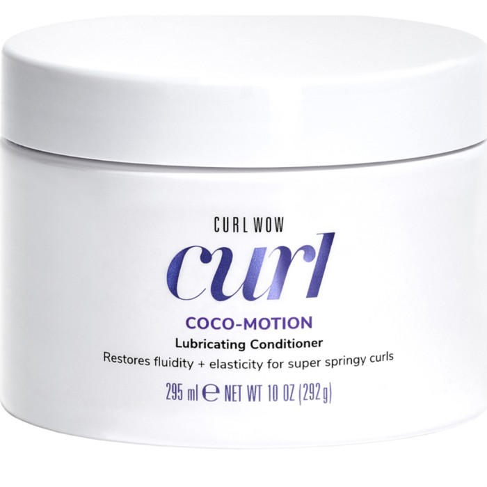 Color Wows Coco-Motion Lubricating Conditioner är ett intensivt återfuktande balsam för lockigt hår. Balsamet tynger inte ner håret och innehåller Color Wows Profaxil 18 Komplex samt kokosolja och marulaolja, två djupverkande oljor. Profaxil-18 är ett patenterat komplex som bryter ner storleken på oljemolekyler så de kan penetrera håret djupare. Komplexet innehåller även 18-mea som hjälper till att låsa in fukten, vilka tillsammans ger ett glansigt, frissfritt och återfuktat hår.