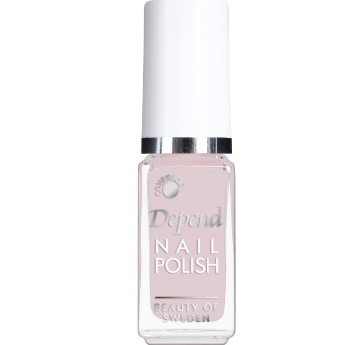 Depend Minilack har en praktisk storlek på 5 ml och lacket är lätt att applicera med den specialdesignade penseln. Penseln är platt och klippt med rundad kant för att vara extra följsam. Flaskan är försedd med symboler som visar lackets täckningsgrad; täckande, halvtäckande eller transparent.