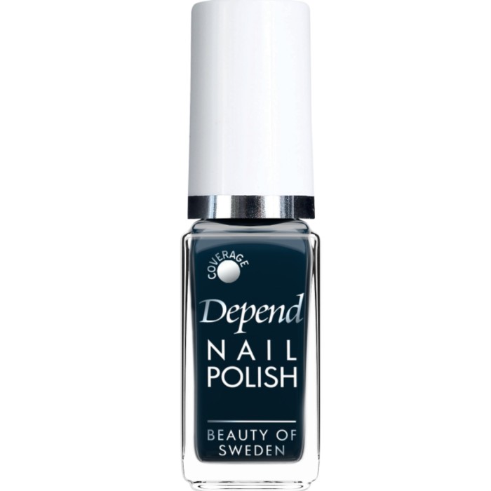 Depend Minilack har en praktisk liten flaska med 5 ml och är lätt att applicera med den specialdesignade penseln. Penseln är platt och klippt med rundad kant och för att vara extra följsam. Flaskorna med Depends minilack är försedda med symboler som visar lackets täckningsgrad; täckande, halvtäckande eller transparent. Kollektionerna uppdateras regelbundet med säsongens nya färger - men lacket är alltid en klassiker med sitt lilla och prisvärda format.