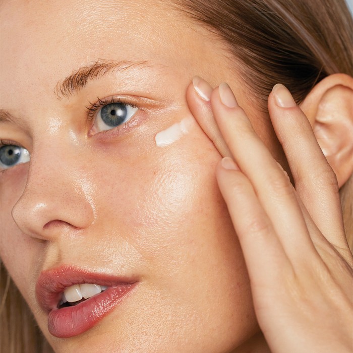Ta lite ögonkräm ungefär som en liten ärta i storlek, och värm mellan fingrarna. Klappa sedan försiktigt in krämen längs med de undre och övre ögonbenen. Massera därefter i små lätta cirklar under ögonen och sedan i en svepande rörelse under brynen, mot tinningarna. Avsluta med lätt strykning över ögonlocken, undvik fransarna. Massera över skrattrynkorna i en utåtgående, svepande rörelse mot hårfästet. Använd morgon och kväll på rengjord hud.