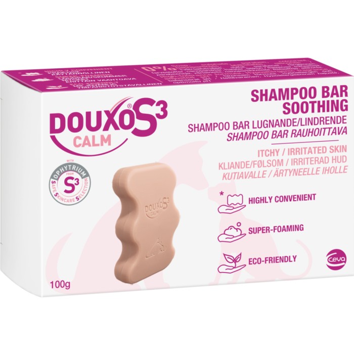 DOUXO S3 Calm Schampo Bar passar dig som vill ha ett naturligt och lenande alternativ för känslig hud.