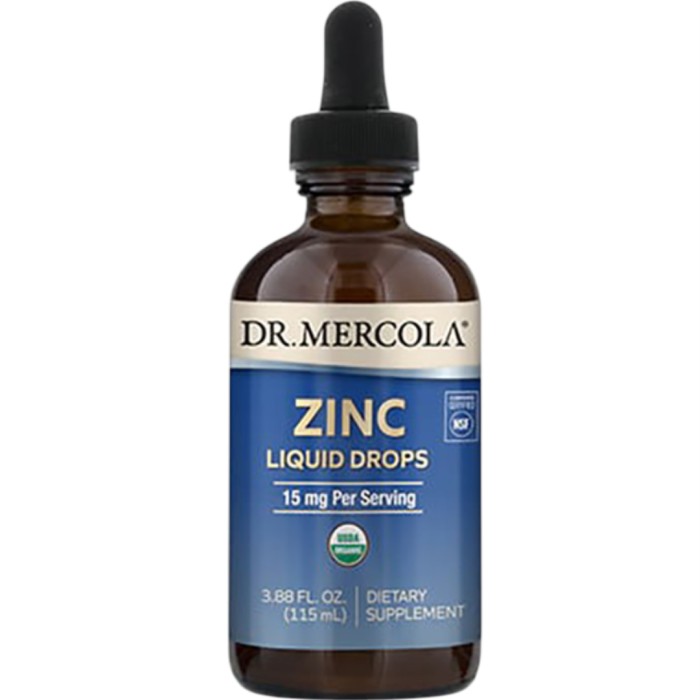 Dr. Mercolas flytande zink-droppar är ett kosttillskott med zinksulfat med tillsats av äppeljuice för smakens skull. Detta kosttillskott ger dig 15 mg zink per dos i flytande form, vilket kan passa bra för den som har svårt att ta kapslar och tabletter.