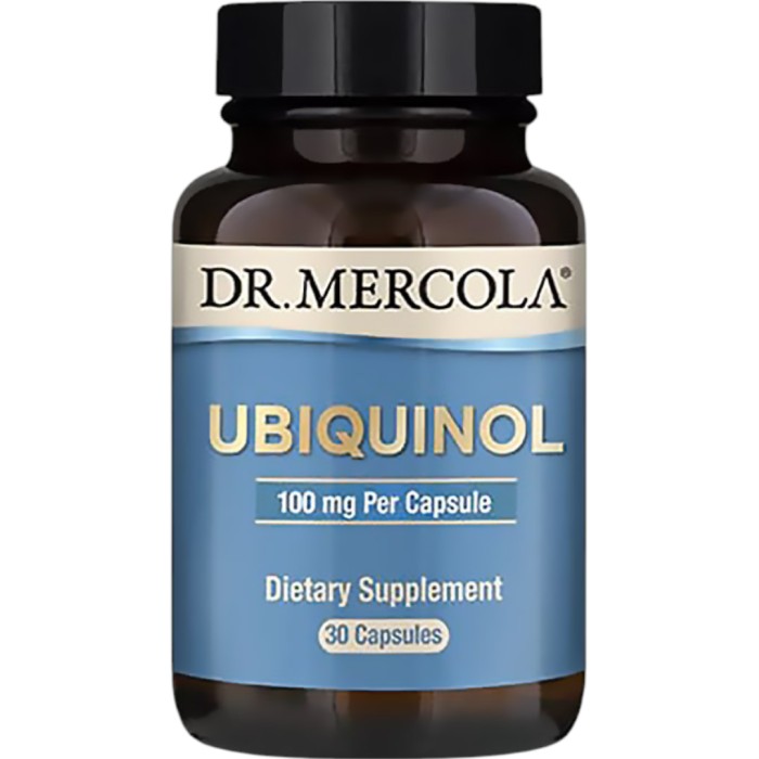 Dr. Mercola Ubiquinol 100 mg är ett kosttillskott med ubiquinol, en reducerad, aktiv form av Q10. Detta är ett fettlösligt ämne som har en roll i cellernas energiproduktion. Dr. Mercola Ubiquinol tillverkas i en exklusiv tillverkningsprocess och genomgår biologisk fermentering för att skapa en produkt som är stabil och har ett högt upptag. I detta kosttillskott är ubiquinolen i hårda kapslar istället för mjuka, för att bättre skydda mot oxidation.
