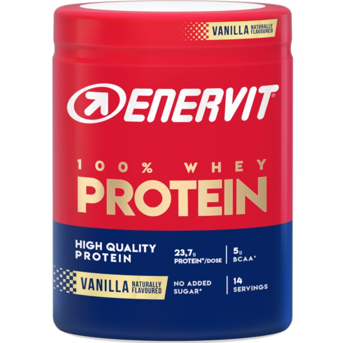 Enervit E.SPORT 100% Whey Vanilla är ett premium-vassleprotein designat för att stödja muskeltillväxt och återhämtning efter träning. Produkten innehåller 100% vassleprotein av hög kvalitet och är framtaget både för nybörjare och professionella atleter som vill maximera sina träningsresultat. Pulvret har en god vaniljsmak och är lätt att blanda. Ger en lättupptaglig källa till protein som bidrar till muskeluppbyggnad och återhämtning.