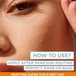 Skaka flaskan ordentligt. Använd ett solskydd varje dag som sista steget i din hudvårdsrutin. Applicera rikliga mängder ofta, minst en handfull, så att du är skyddad hela tiden, särskilt när du svettas eller när du har badat och torkat dig. Undvik ögonområdet. För mycket sol medför en allvarlig hälsorisk. Utsätt inte spädbarn och småbarn för direkt sol. Vistas inte för länge i solen, även om du använder solskyddsmedel, eftersom det inte ger 100 % skydd. Applicera solskyddsmedlet innan du går ut i solen.