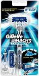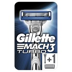 Gillette Mach 3 Turbo rakhyvel kombinerar Gillettes avancerad rakteknologi med tre rakblad med Anti-Friction-blad som varsamt glider över huden. Det rörliga rakhuvudet har 10 mikrolameller som följer konturerna i ansiktet för. Rakhyveln har en smörjande remsa på rakhuvudet som bleknar md användningen och visar när det är dags att byta rakblad.