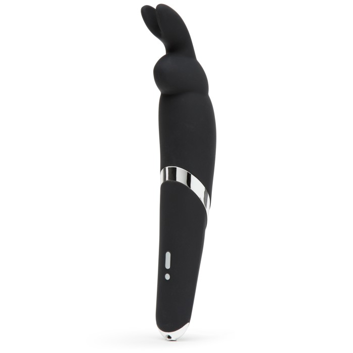 Happy Rabbit Wand Vibrator i svart är en sofistikerad bodywand med kraftfula vibrationer. Den har 10 vibrationsmönster med 3 hastigheter, och du kan välja mellan det fasta kaninhuvudet eller de flexibla öronen för en personlig njutningsupplevelse. Detta är en uppladdningsbar och vattentät vibrator som kan användas för både solo- och parlek. Har ett reselås för att kunna tas med i resväskan.