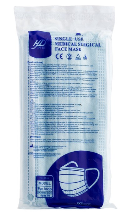 Kirurgiskt munskydd klass IIR för engångsbruk gjort för att fånga mikroorganismer i utandningsluften från användaren och skydda omgivningen från risken att få en infektion. Munskyddet skyddar även användaren från synliga droppar och stänk från kroppsvätskor. Skyddar dock inte mot luftburen smitta.