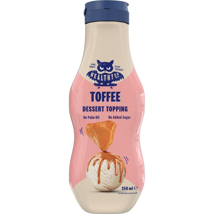 HealthyCo Dessert Topping Toffee är en kolasås helt utan tillsatt socker. Kan användas som topping på bakverk och glass.