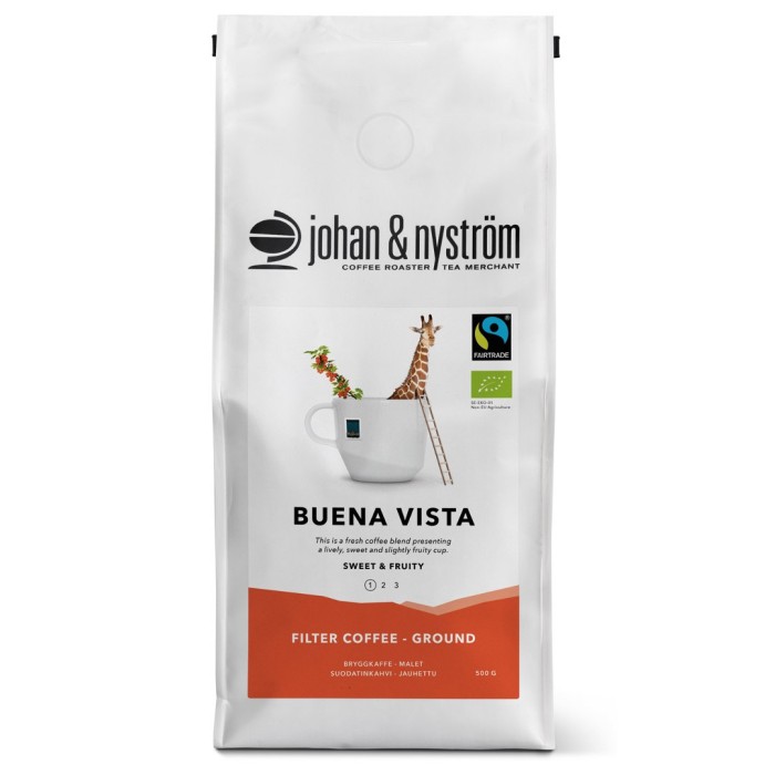 Buena Vista från Johan & Nyström är ett bryggmalet och Fairtrade-märkt kaffe gjort på en ekologisk blandning. Ger en pigg, söt och lite lätt fruktig kopp kaffe som andas av framtidens bryggkaffe.