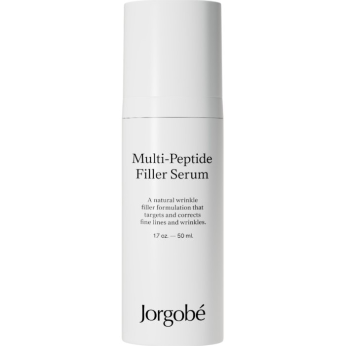 Jorgobé Multi-Peptide Filler Serum är ett ansiktsserum med två avancerade peptider: Matrixyl® och Argireline®, samt 5% hyaluronfiller som är inspirerad av fillerinjektioner. Serumet är framtaget för att ge huden ett föryngrat utseende med mindre synliga rynkor.