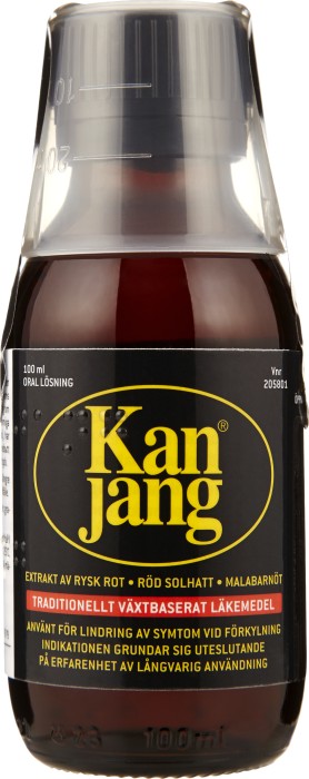 Vuxna, äldre och ungdomar över 12 år: 15 ml 2 gånger dagligen. Barn under 12 år: Får inte ges till barn under 12 år. Behandlingstid: Behandlingen bör starta så snart som möjligt när förkylningssymtomen uppträder. Kan Jang skall inte användas i längre perioder än 10 dagar per behandlingstillfälle. Om symptomen kvarstår längre än 10 dagar under användning av Kan Jang bör läkare eller annan sjukvårdspersonal konsulteras. Ta inte Kan Jang - om du är allergisk (överkänslig) mot Echinacea purpurea (röd solhatt) eller mot andra korgblommiga växter (t ex röd solhatt, prästkrage, maskros, kamomill, malört eller gråbo). - om du är allergisk (överkänslig) mot rysk rot eller malabarnöt eller mot något av övriga innehållsämnen i Kan Jang. - om du har någon pågående systemisk sjukdom (t ex tuberkulos, leukemi, bindvävssjukdomar, multipel skleros (MS), AIDS, HIV-infektion eller andra autoimmuna sjukdomar) eller nedsatt immunförsvar. - om du har högt blodtryck. - för behandling av barn under 12 år. - om du är gravid.