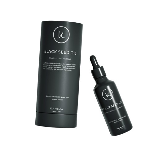 Karima Black Seed Oil är en ekologisk svartkumminolja av hög kvalitet som passar alla hud- och hårtyper. Oljan är en torr och snabbabsorberande olja som är lätt att applicera. Du kan använda den både på huden och i håret en gång om dagen.