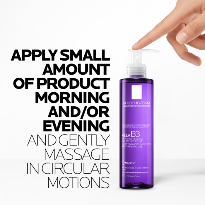 MELA B3 Facial Micro-Peeling Gel Cleanser från La Roche-Posay är en mild rengöringsgel för ansiktet som exfolierar huden för att ge en jämnare hudton. Rengöringen är berikad med MELASYL™, en exklusiv ingrediens från La Roche-Posay, samt niacinamid och PHA för att rengöra huden utan att torka ut. MELA B3 Cleanser minskar samtidigt synbart pigmentfläckar och bibehåller hudens naturliga fuktbarriär och pH-värde.