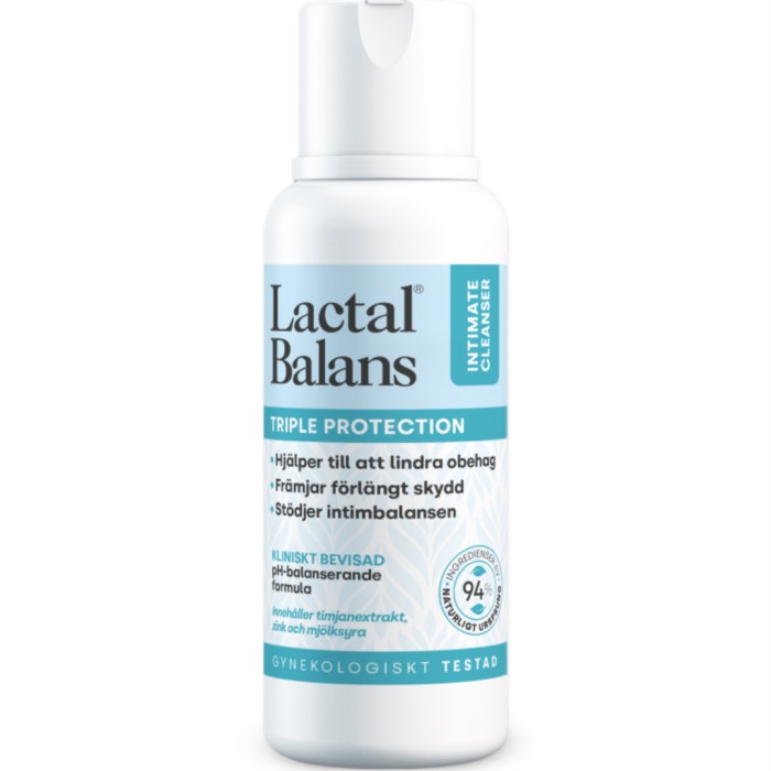Lactal Balans Triple Protection är en flytande intimrengöring med timjan, zink och mjölksyra. Intimtvätten hjälper till att lindra obehag och stödjer intimbalansen.