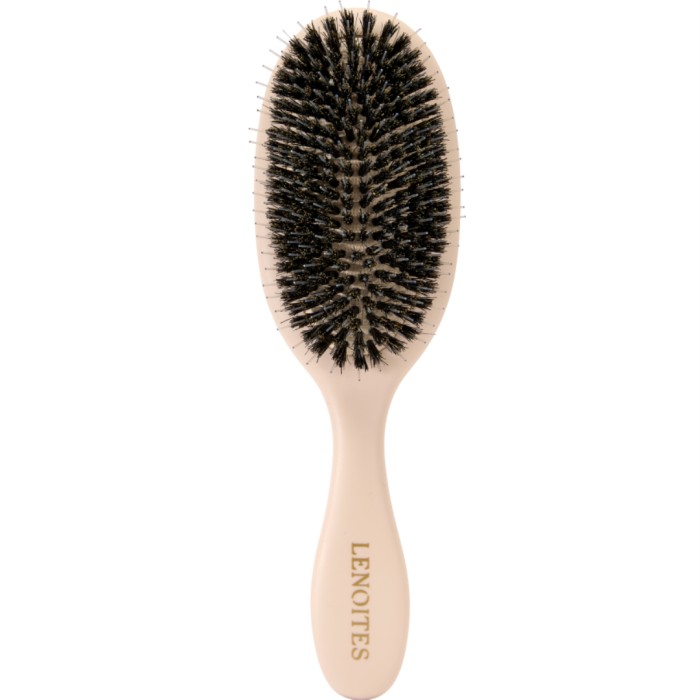 Lenoites Svinhårsborste Blush är en skonsam oval hårborste med en kombination av vildsvinshår och nylonpinnar som hjälper till att reda ut håret. Borsten fördelar de naturliga oljorna från hårbotten till hårtopparna för minskad frissighet och för att ge håret glans. Luftkudden anpassar sig efter huvudets form, och den praktiska storleken gör att borsten lätt får plats i väskan.