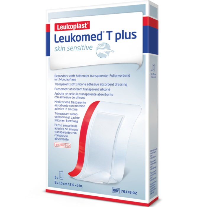 Leukomed T plus skin sensitive är ett sterilt, vattentätt sårförband för svagt till måttligt vätskande sår, perfekt för skärsår, skrubbsår och andra mindre sår. Passar skör, känslig och skadad hud.