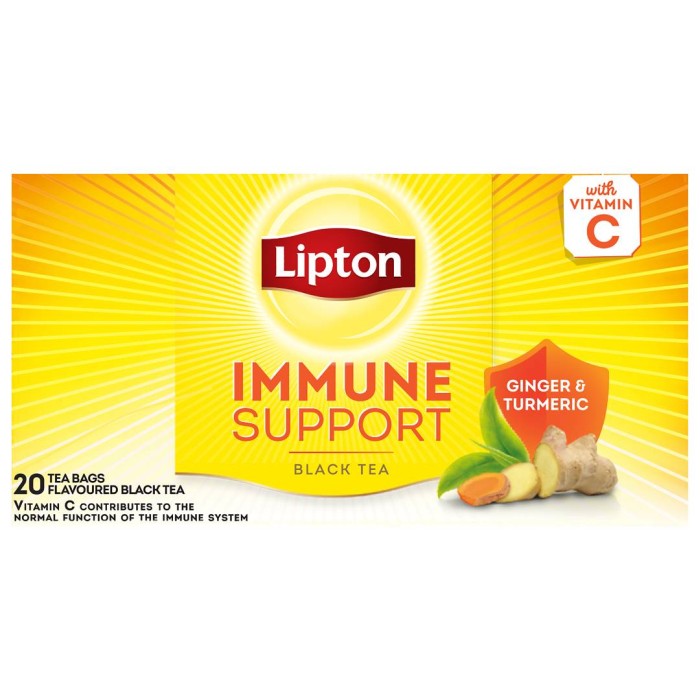 Lipton Immune Support Black Tea är ett svart te med ingefära och gurkmeja. Teet innehåller också innehåller C-vitamin.