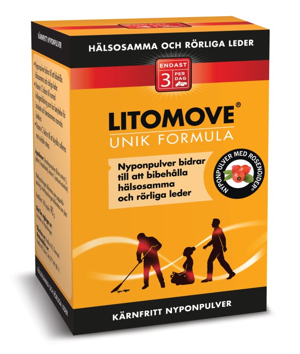 LitoMove innehåller noga utvalda nypon som är plockade i det vilda. Strandnyponpulver bidrar till att bibehålla hälsosamma och rörliga leder.