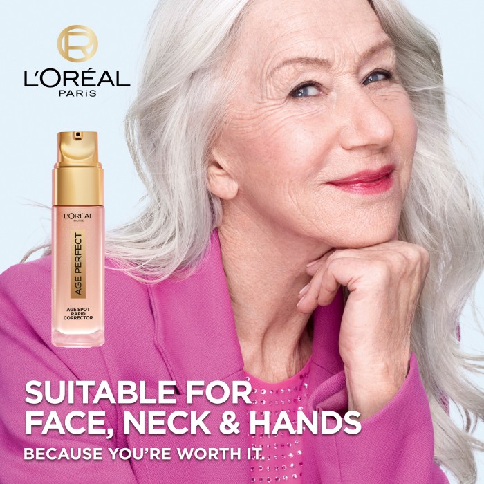 Age Perfect Age Spot Rapid Corrector Serum från L'Oréal Paris är ett ansiktsserum för mogen hud, framtaget för att reducera synligheten av åldersfläckar. Age Spot Corrector Serum tillför fukt till huden, reducerar fina linjer och ger en mer enhetlig hudyta med lyster. Passar för mogen hud och kan användas i ansiktet, på hals och på händer. För kvinnor från ca 65 år.